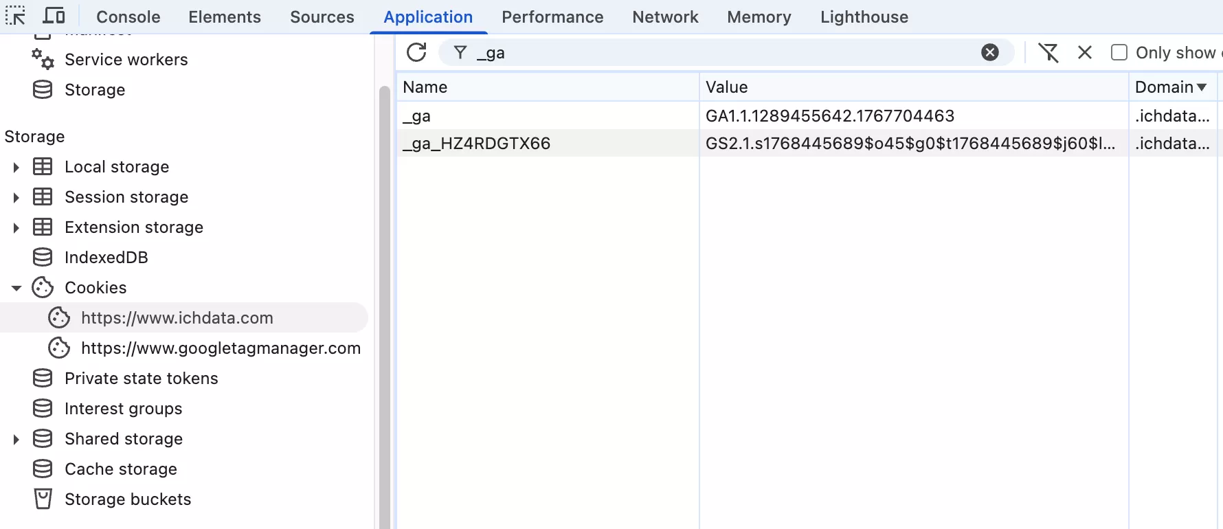 验证方式:访问网站,打开浏览器开发者工具,选择「应用」——「Cookies」,选择你的网站,可以看到有Cookie _ga和_ga_HZ4RDGTX66